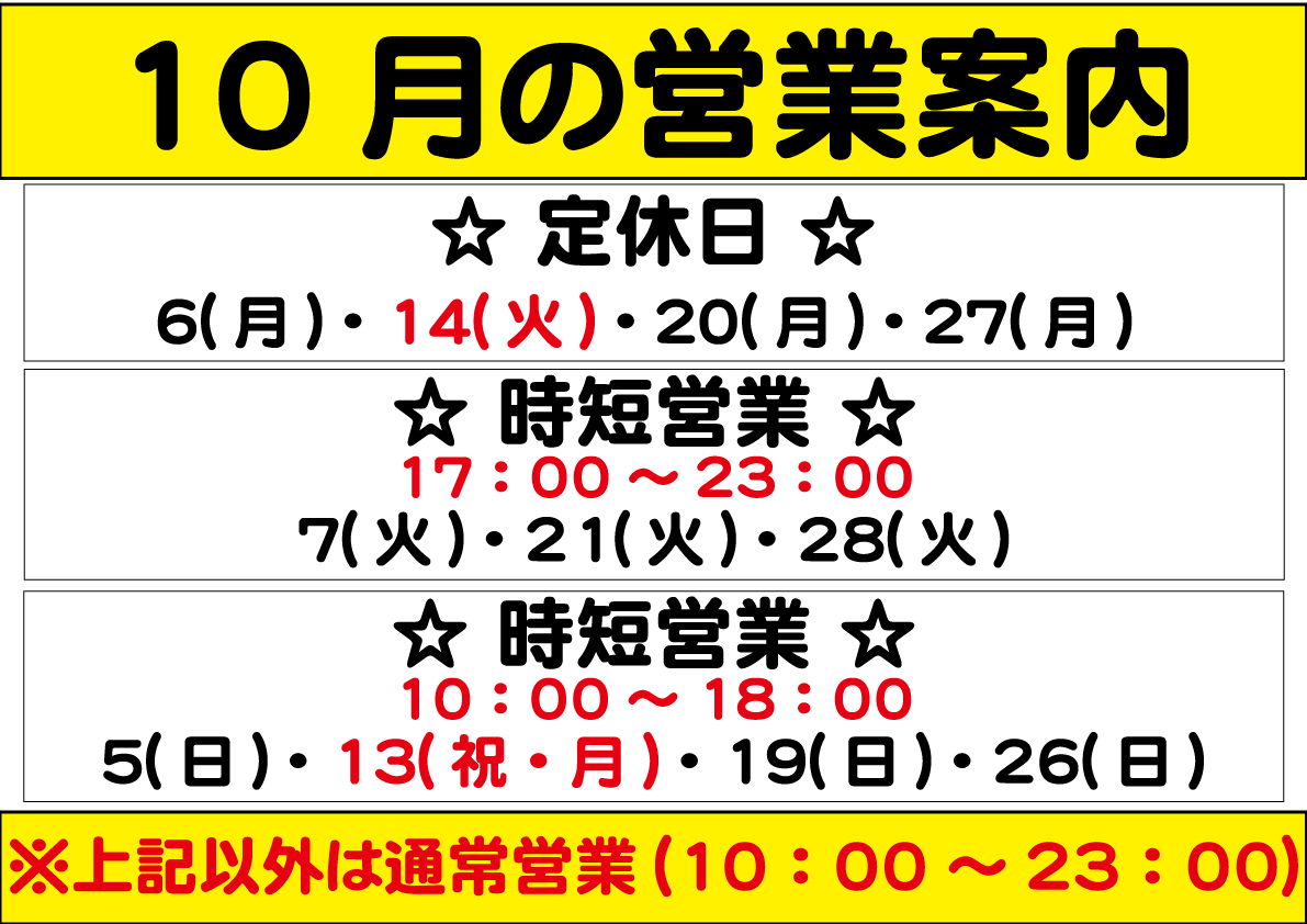 | 10:00~17:00 | 17:00~23:00 | 10:00~23:00 |